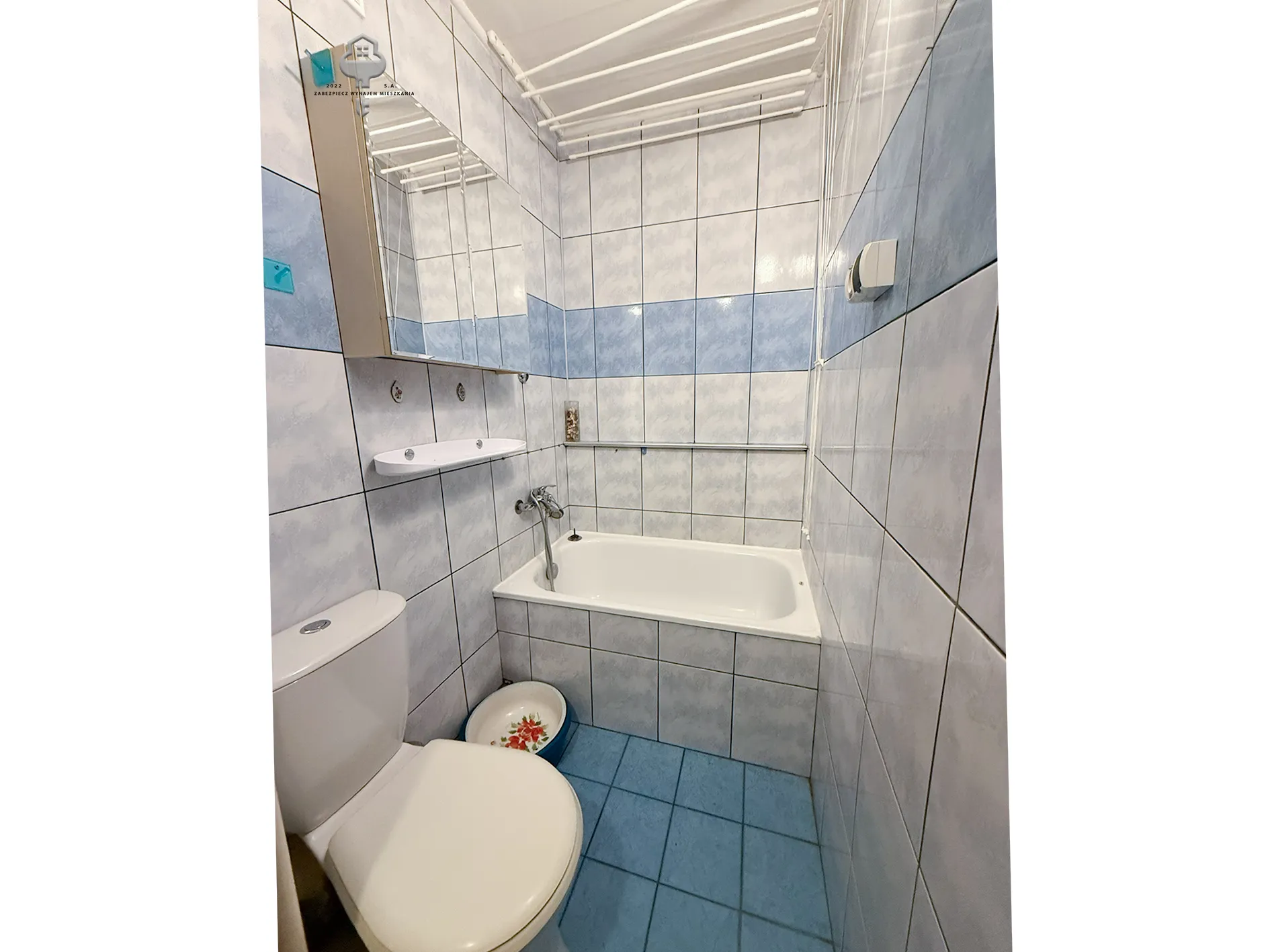 3) Łazienka: wanna, kompakt WC, szafka z lustrem;