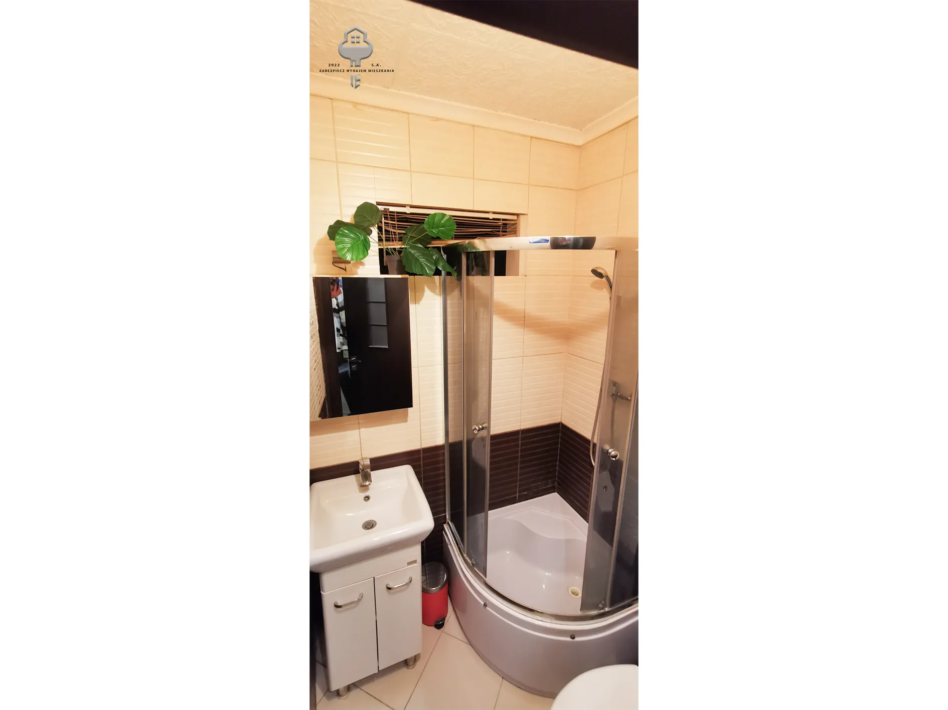 4) Łazienka: szafka z umywalką, szafka z lustrem, prysznic, kompakt WC;
