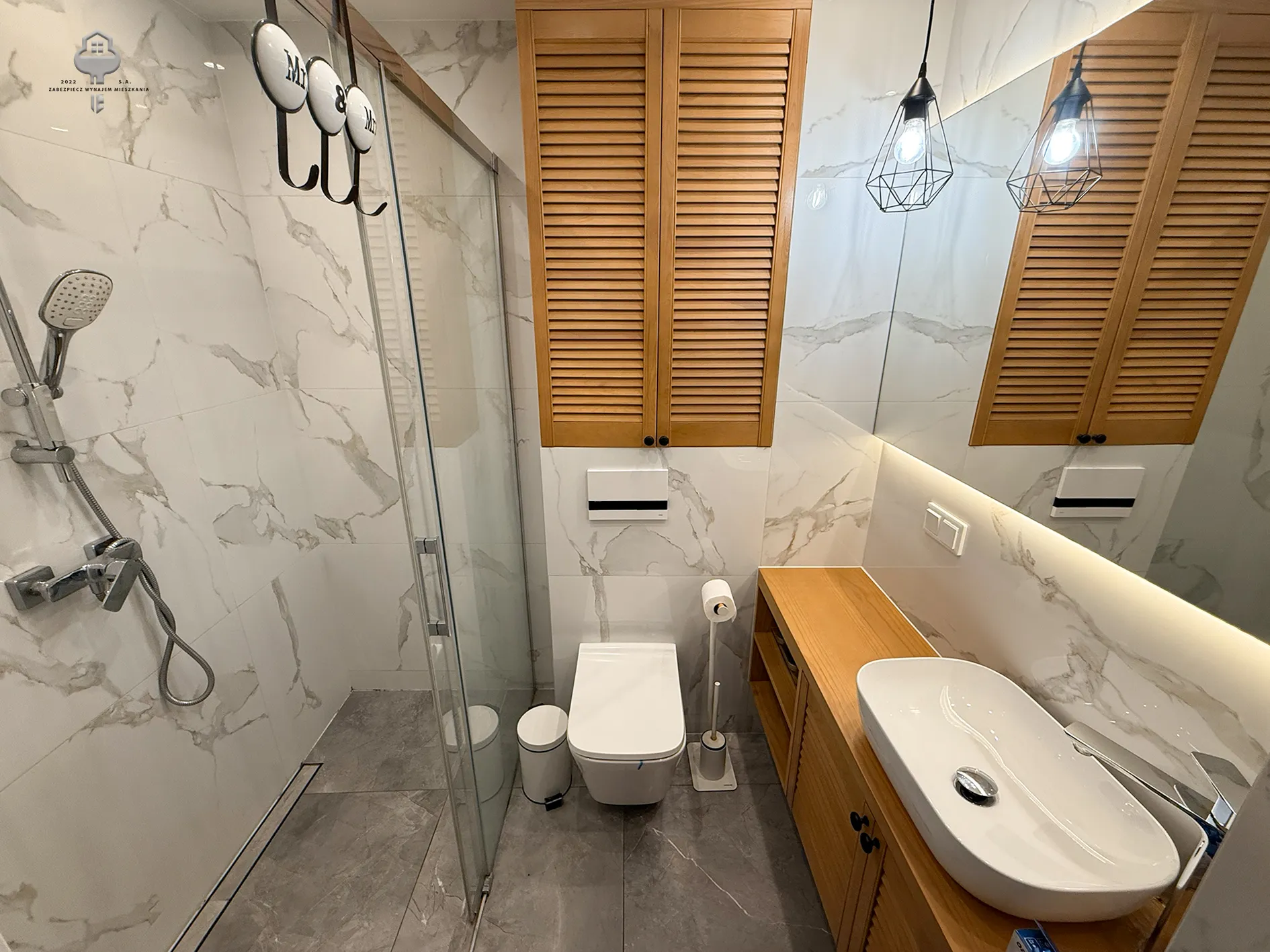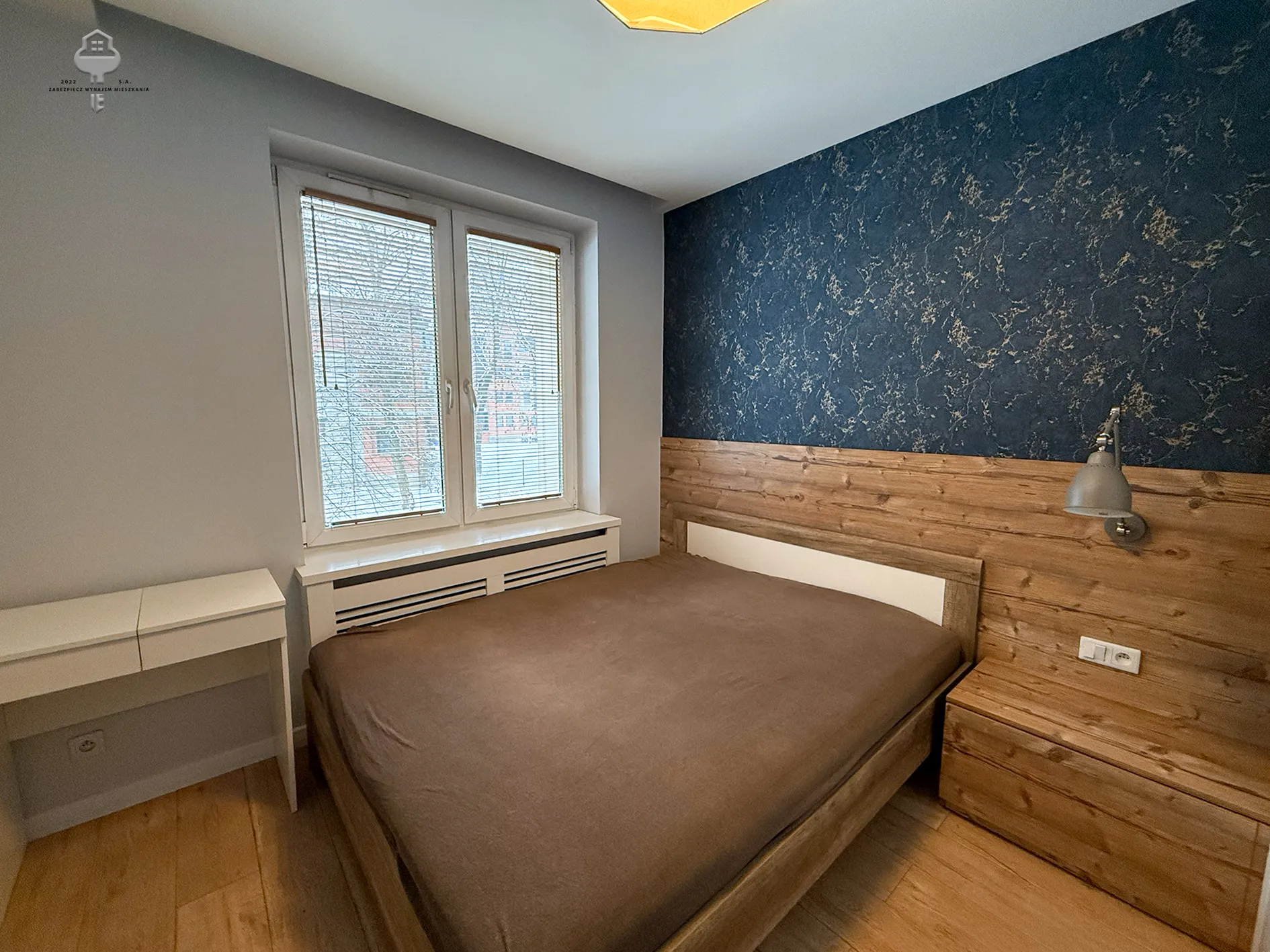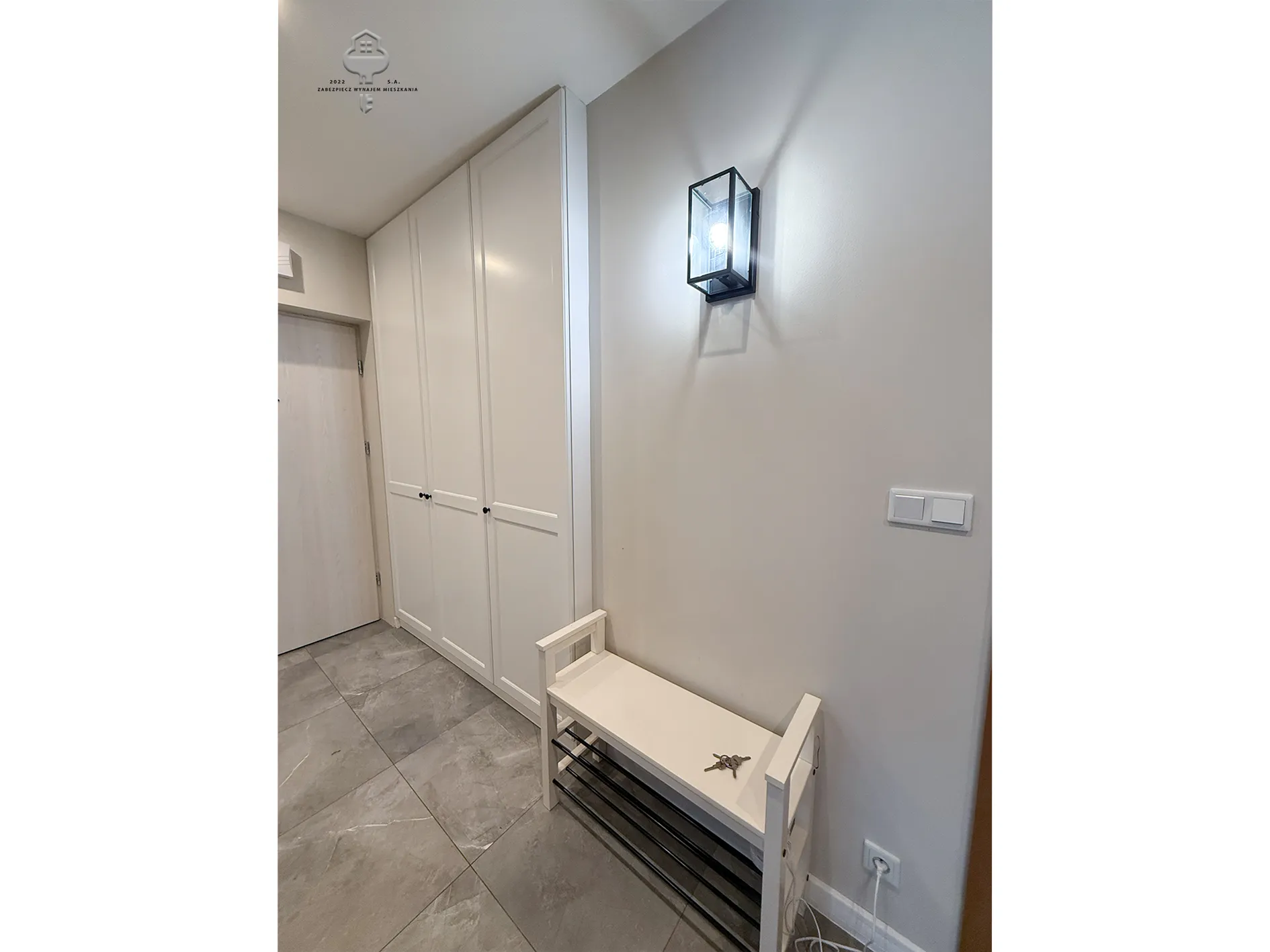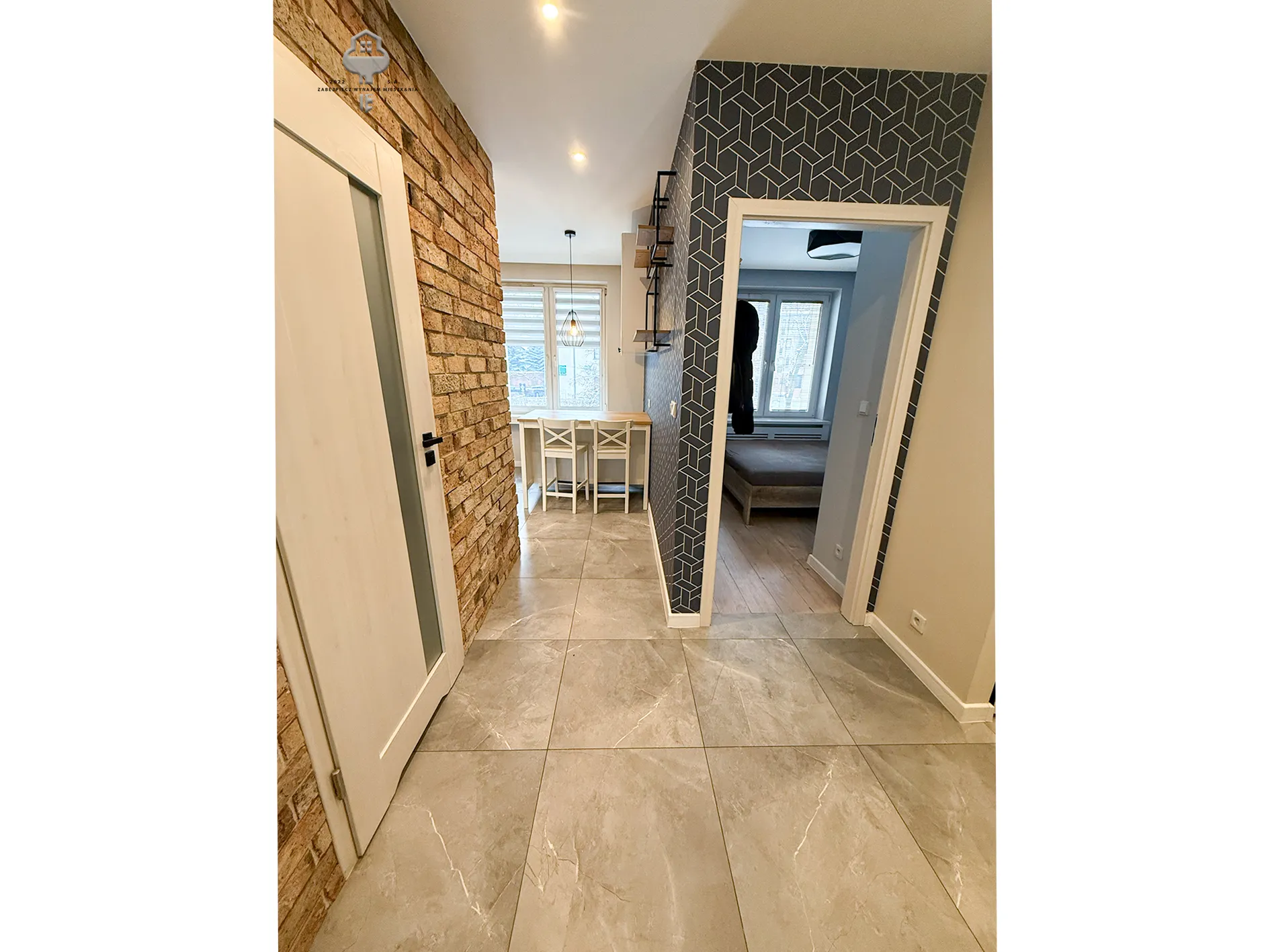 Nieruchomość zlokalizowana na zielonym spokojnym osiedlu. Mieszkanie urządzone w wysokim standardzie, składające się z dwóch pokoi, kuchni, przedpokoju, łazienki. Lokal podzielony na strefę ogólnodostępną oraz prywatną, dominujące barwy jasne z dodatkami drewna oraz ciemniejszych dodatków. Mieszkanie bardzo funkcjonalne oraz przestronne. Wszystkie okna zaopatrzone w rolety.