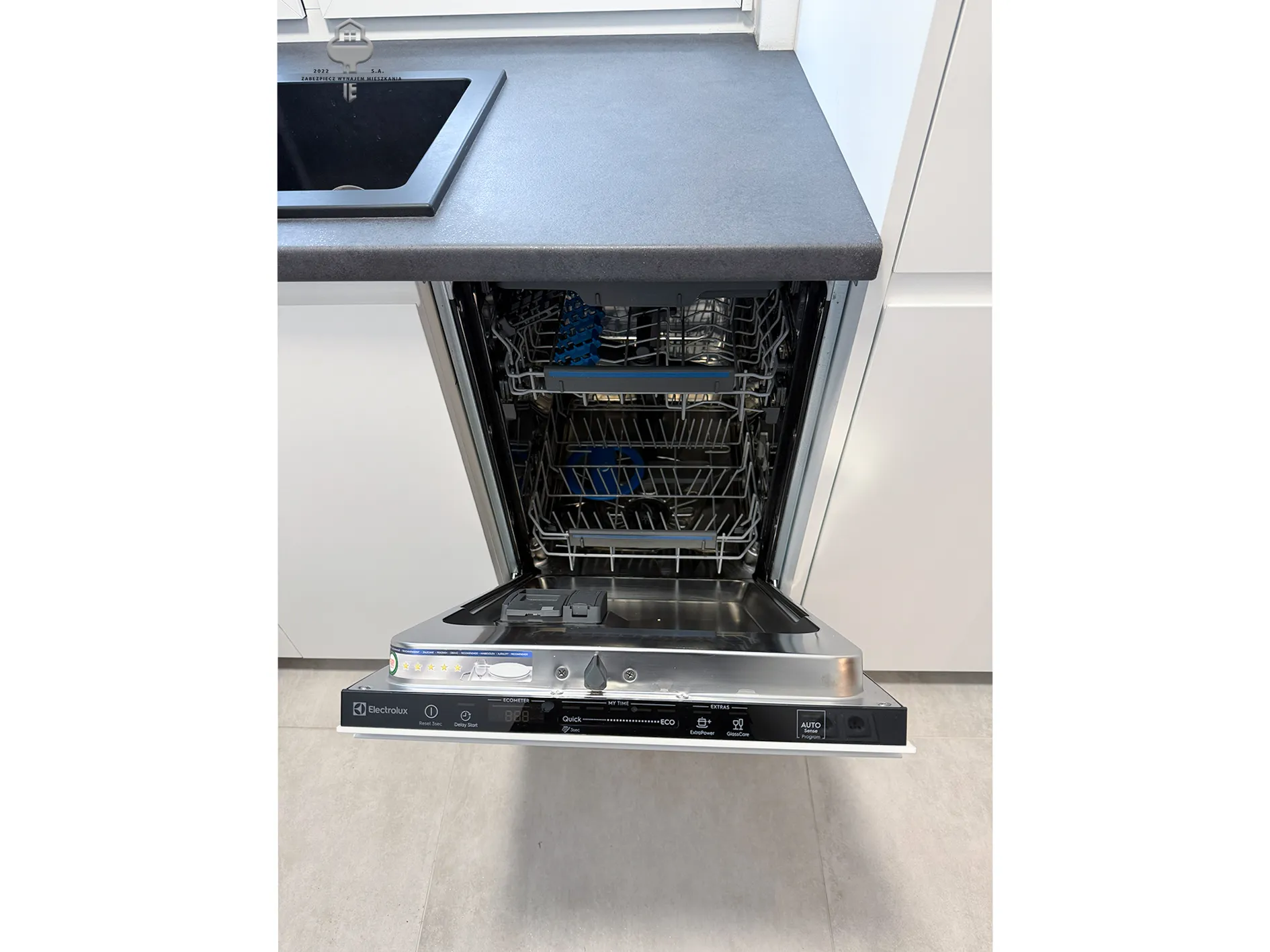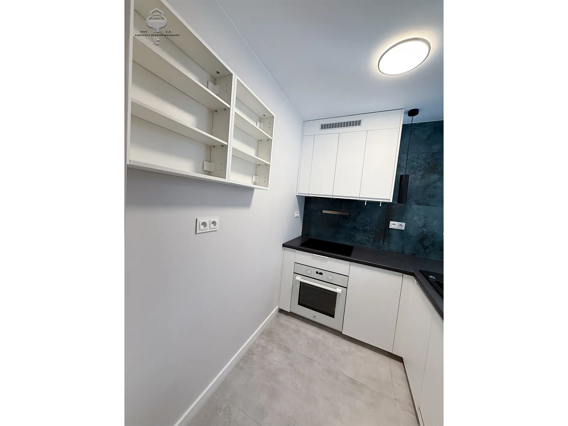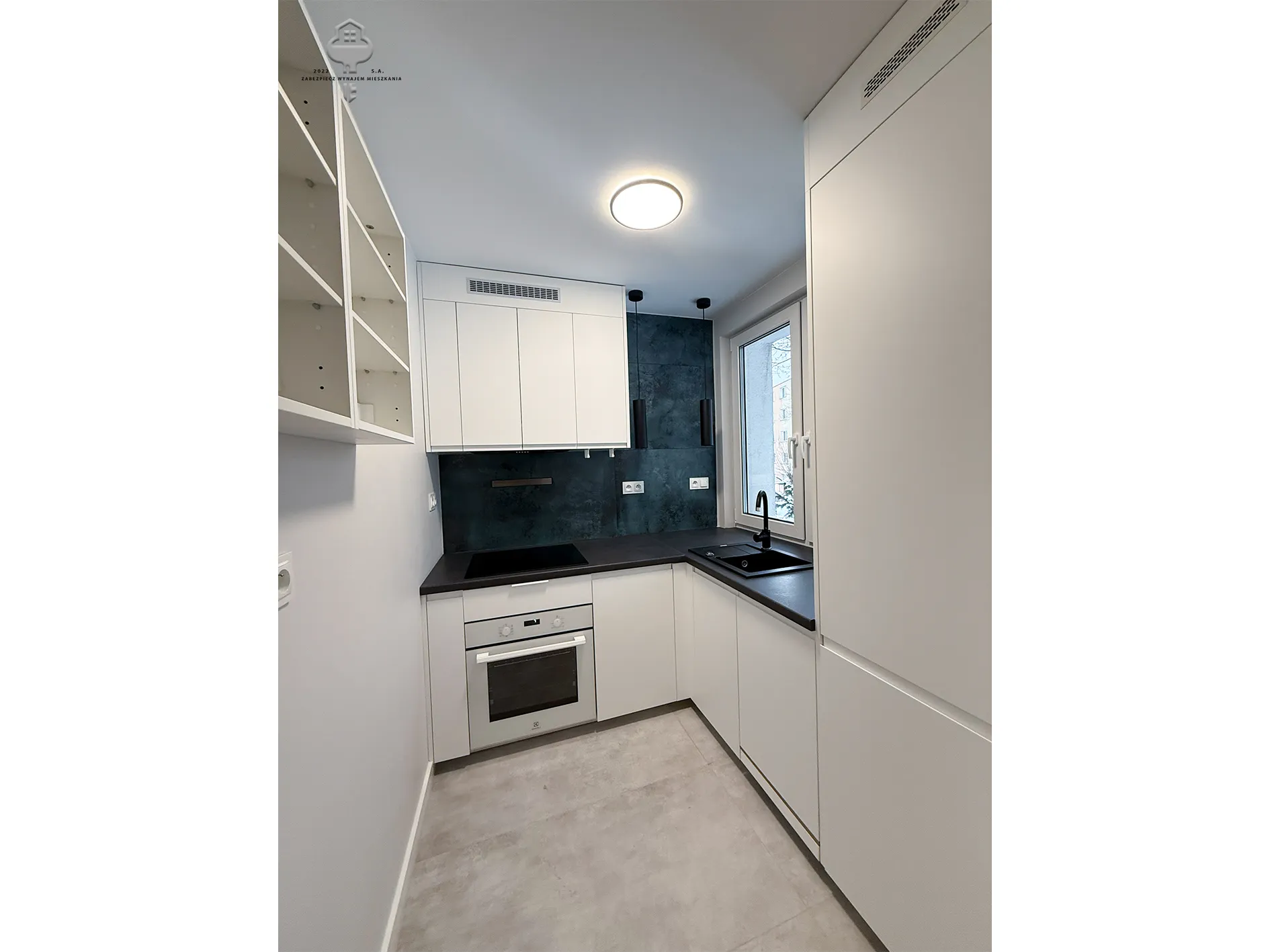 2) Aneks kuchenny: zabudowa meblowa kuchenna, lodówko-zamrażalka, zmywarka, piekarnik, płyta indukcyjna, zlewozmywak, wiszące półki;