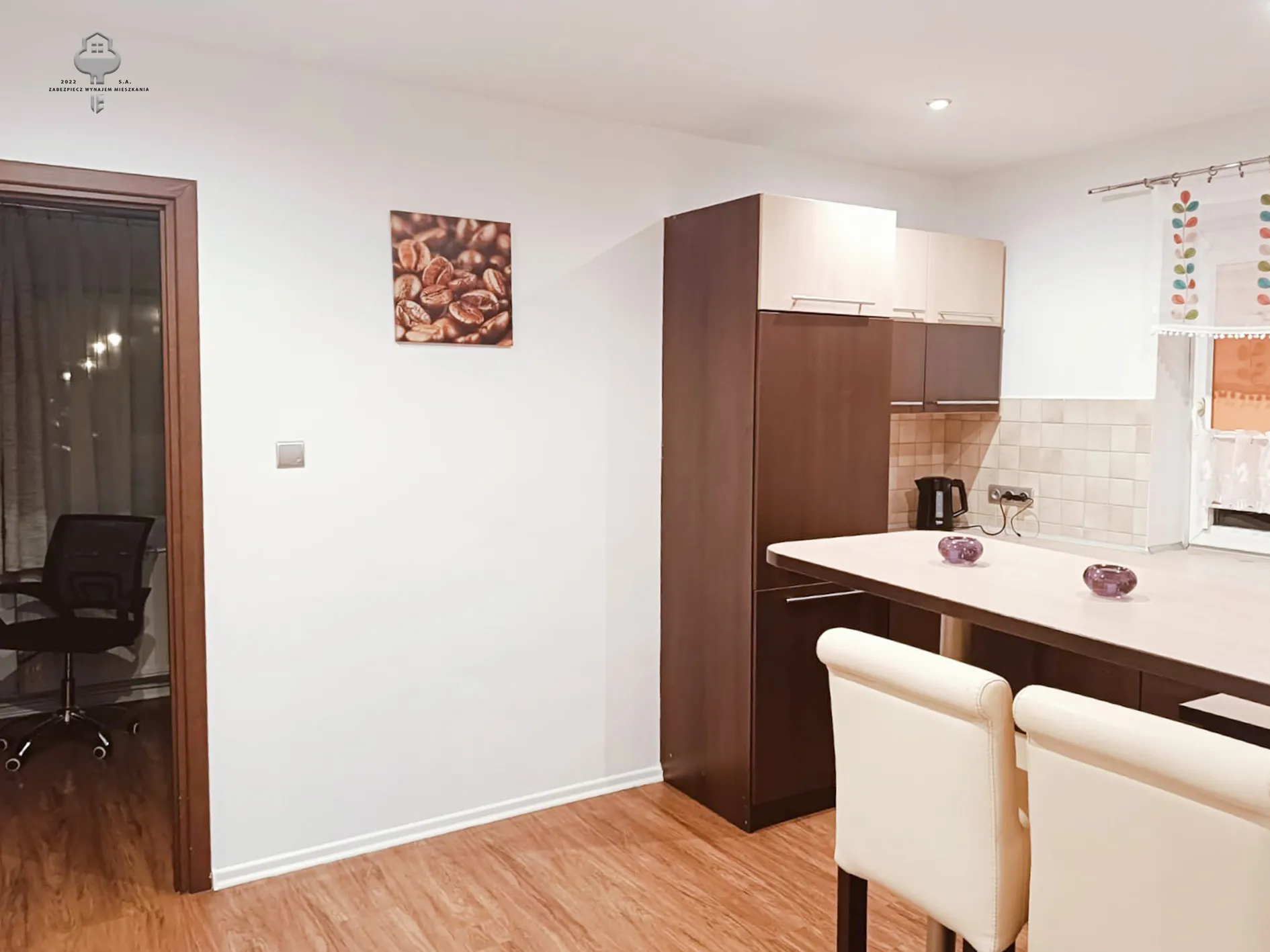 Nieruchomość zlokalizowana na zielonym spokojnym osiedlu. Mieszkanie składa się z dwóch pokoi, łazienki oraz przedpokoju. Mieszkanie o jasnych barwach z dodatkami drewna, umeblowane, gotowe do zamieszkania. Każde okno wyposażone w firanki oraz zasłony. Rozkład mieszkania jest bardzo funkcjonalny, dzięki czemu widać podział lokalu na strefę ogólnodostępną oraz prywatną.