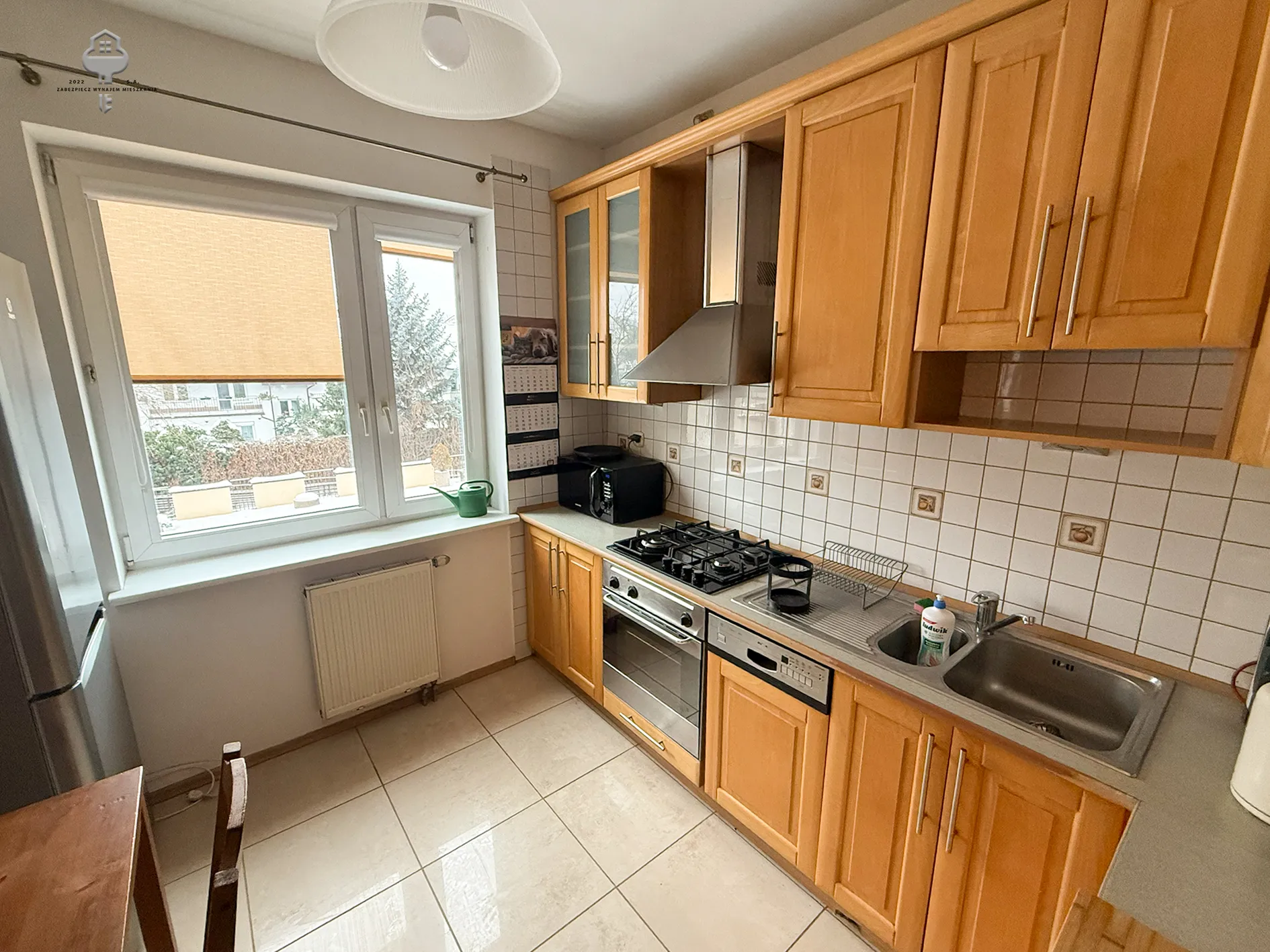 2) Aneks kuchenny: zabudowa meblowa, stół, 2 krzesła, lodówko-zamrażalka, mikrofala, piekarnik, płyta gazowa, zmywarka, okap, czajnik elektryczny, zlewozmywak, ;