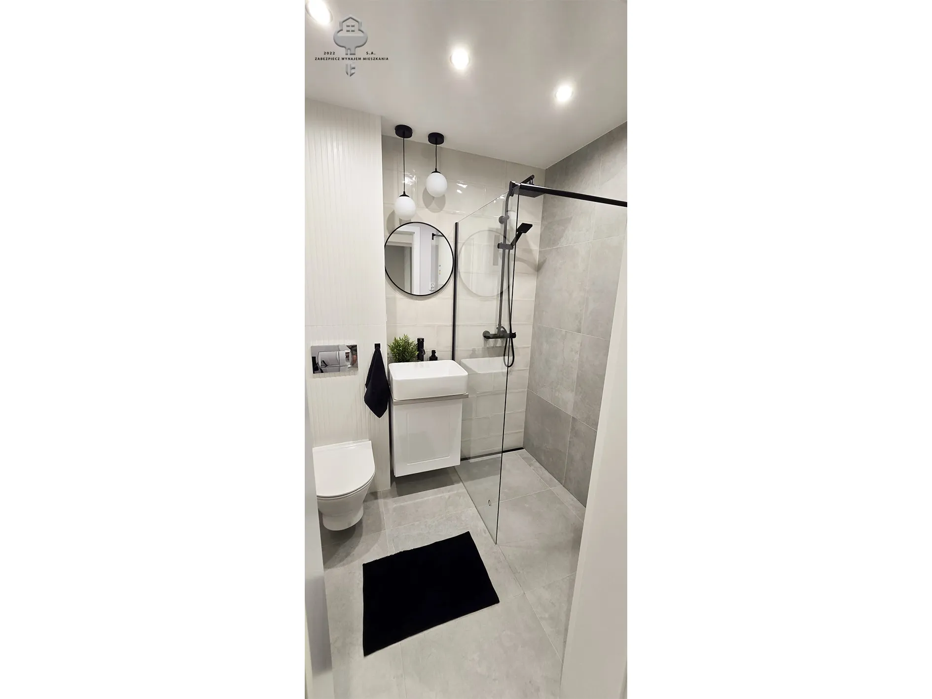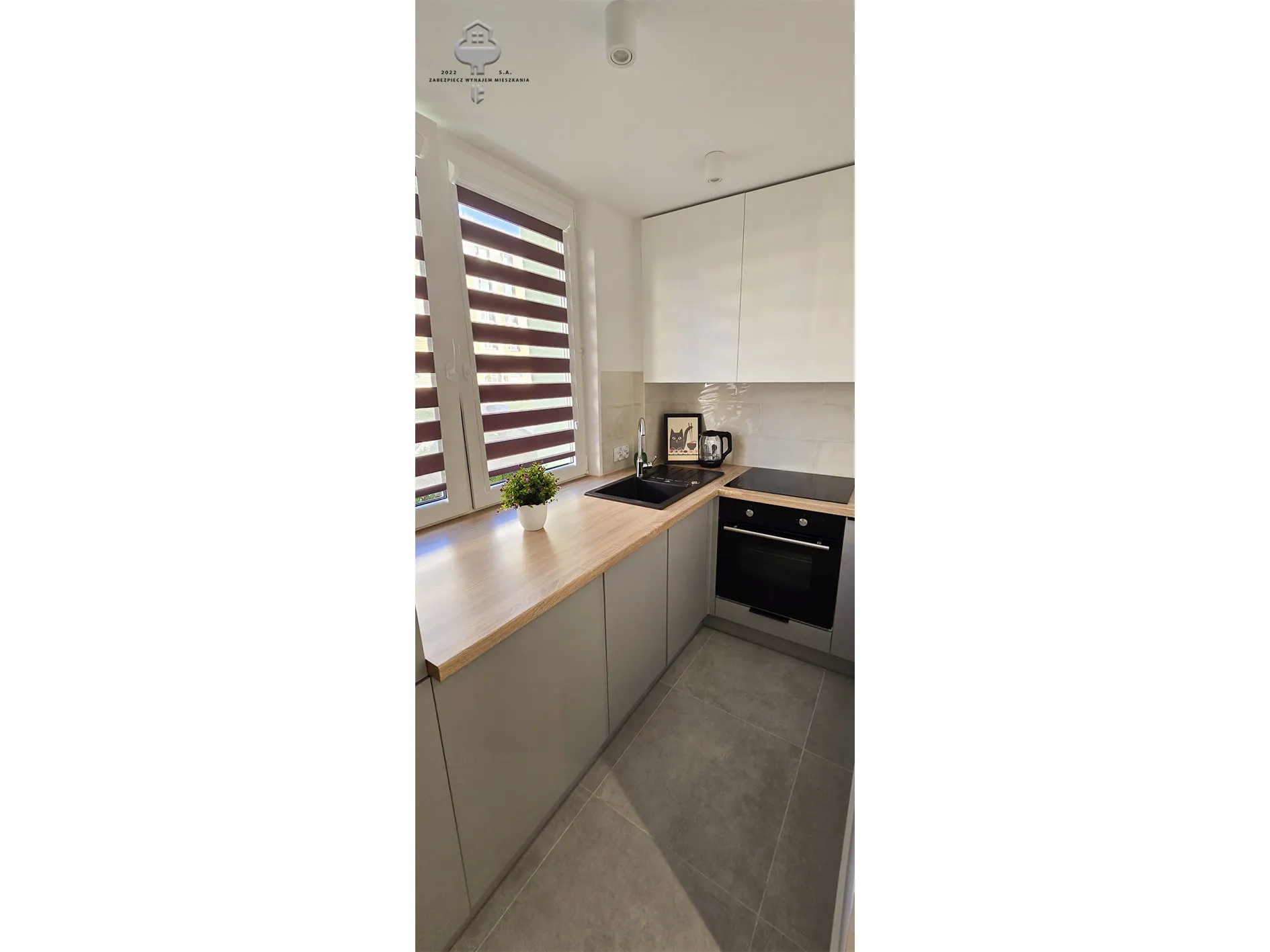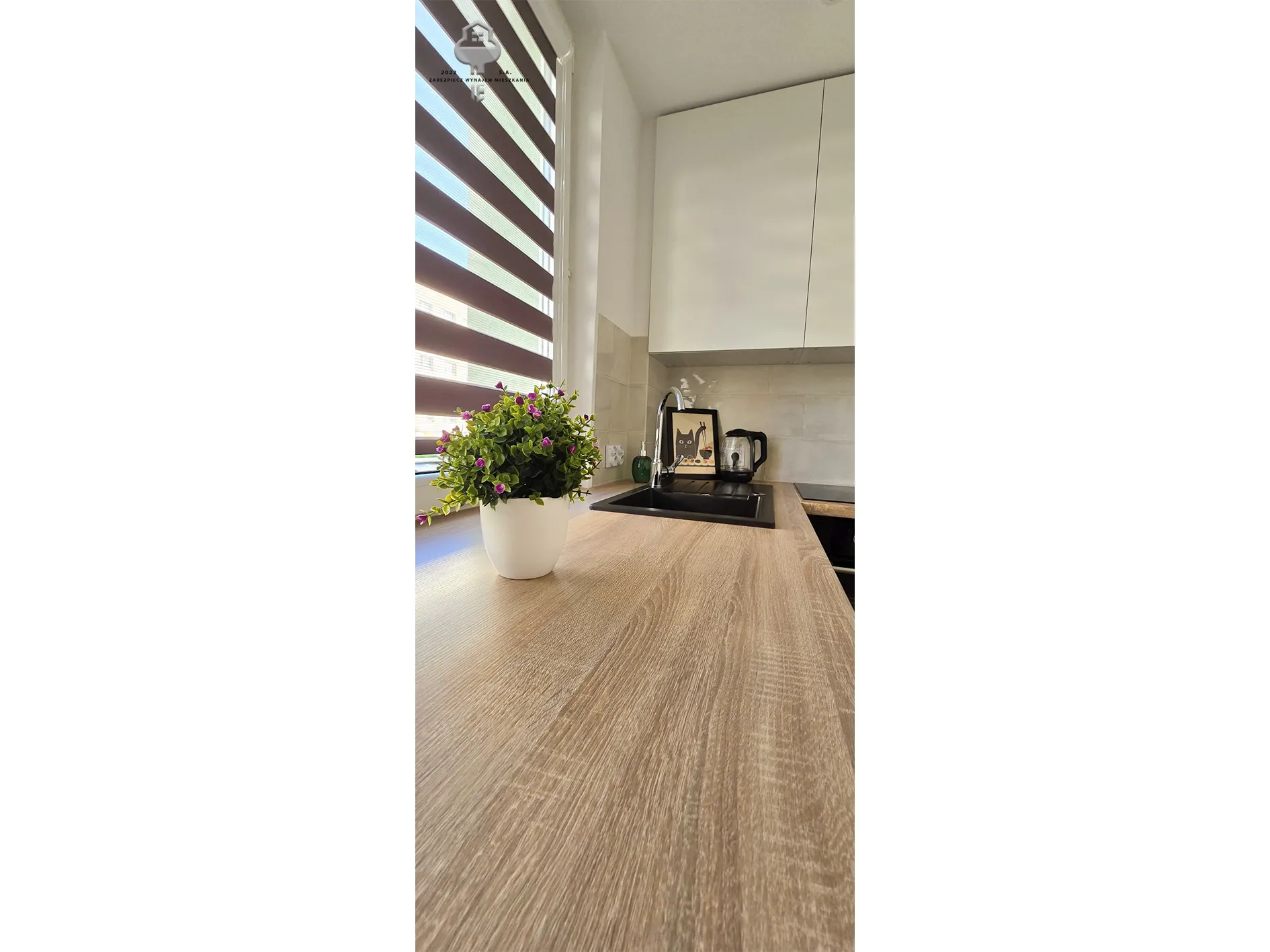 Nieruchomość zlokalizowana na spokojnym zielonym osiedlu w pobliżu lasu. Mieszkanie nowoczesne urządzone w jasnych barwach z dodatkami drewna i czerni. Składa się z przestronnego salonu, sypialni, oddzielnej kuchni, łazienki oraz przedpokoju. Mieszkanie po remoncie, wszystko jest nowe. W każdych oknach rolety.