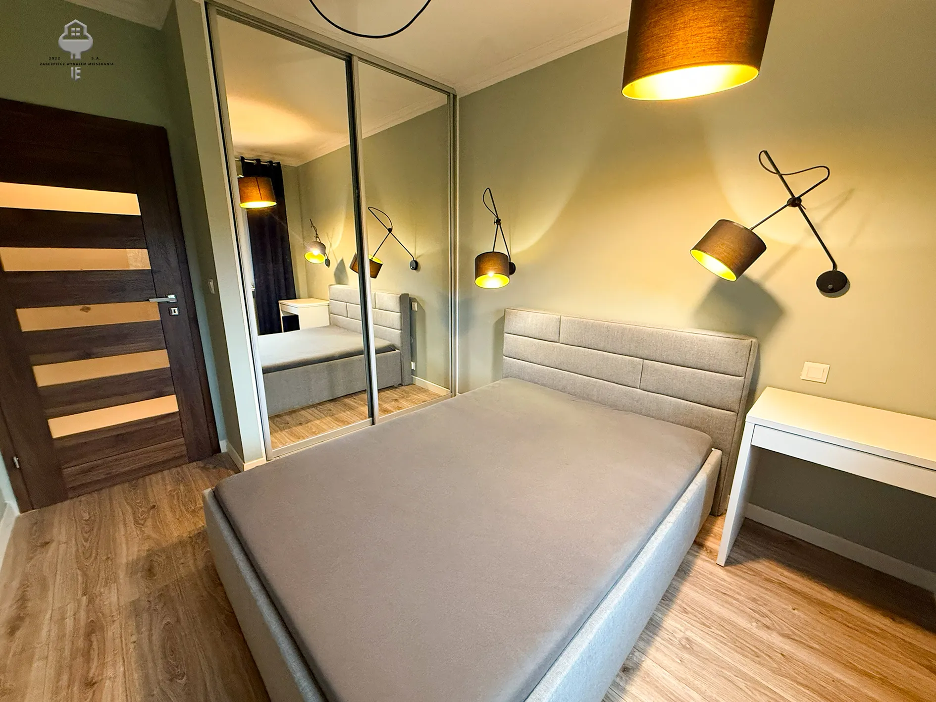 Nieruchomość zlokalizowana na zamkniętym zielonym osiedlu. Lokal w nowoczesnym designie, w tonacji beżu z dodatkami ciemniejszych barw. Lokal składa się z aneksu kuchennego z salonem, który ma dostęp do balkonu, sypialni, łazienki oraz przedpokoju. W mieszkaniu jest klimatyzacja, okna zaopatrzone są w rolety.