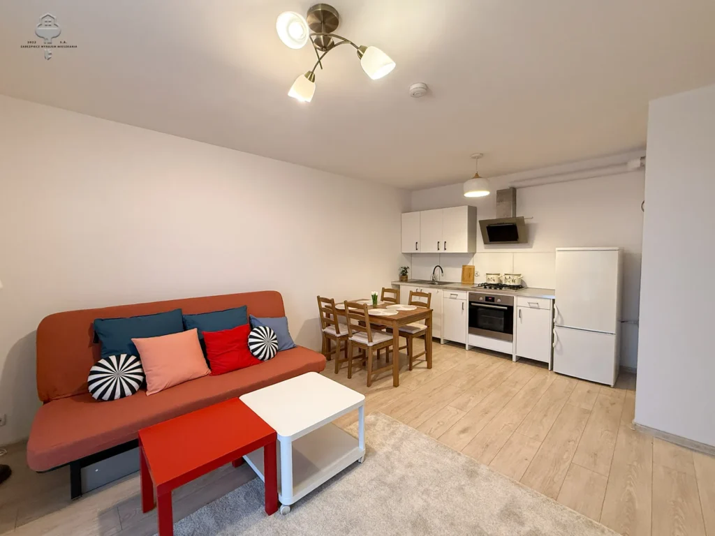 Mieszkanie zlokalizowane na spokojnym osiedlu z widokiem na panoramę osiedla. Lokal składa się ze słonecznego salonu z aneksem kuchennym, dużego balkonu, jasnej sypialni, łazienki oraz przedpokoju. W mieszkaniu królują jasne barwy z dodatkami drewna, całość daje poczucie komfortu oraz ciepła. W każdych oknach zamontowane zostały zasłony, nieruchomość jest w całości umeblowana i wyposażona, gotowa do zamieszkania.