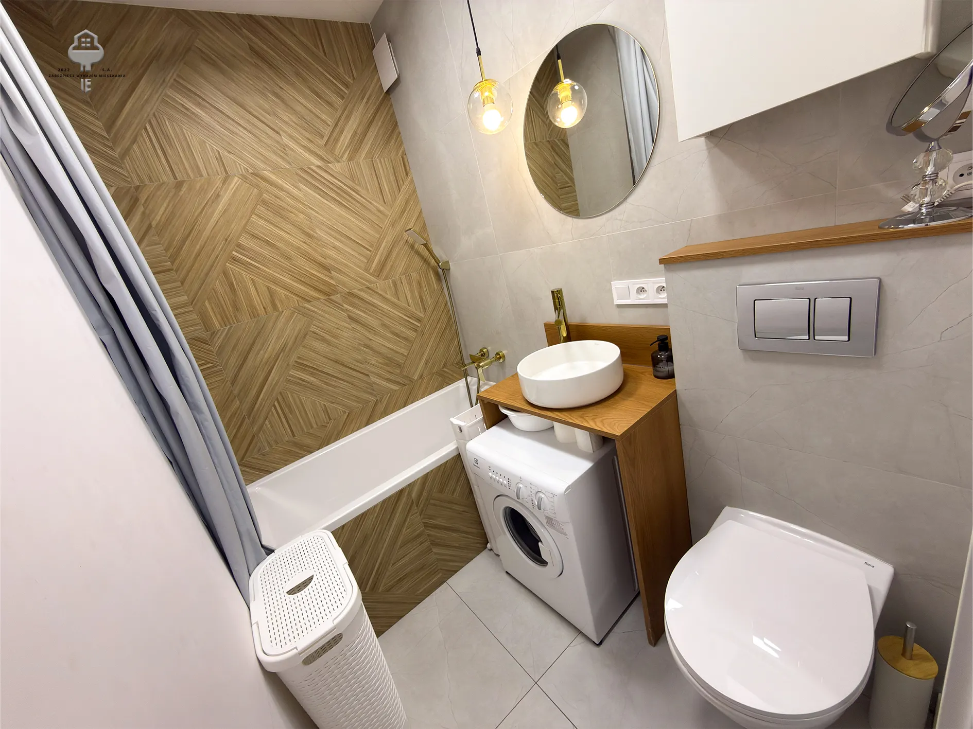 4. Łazienka: wanna, pralka, sedes, umywalka