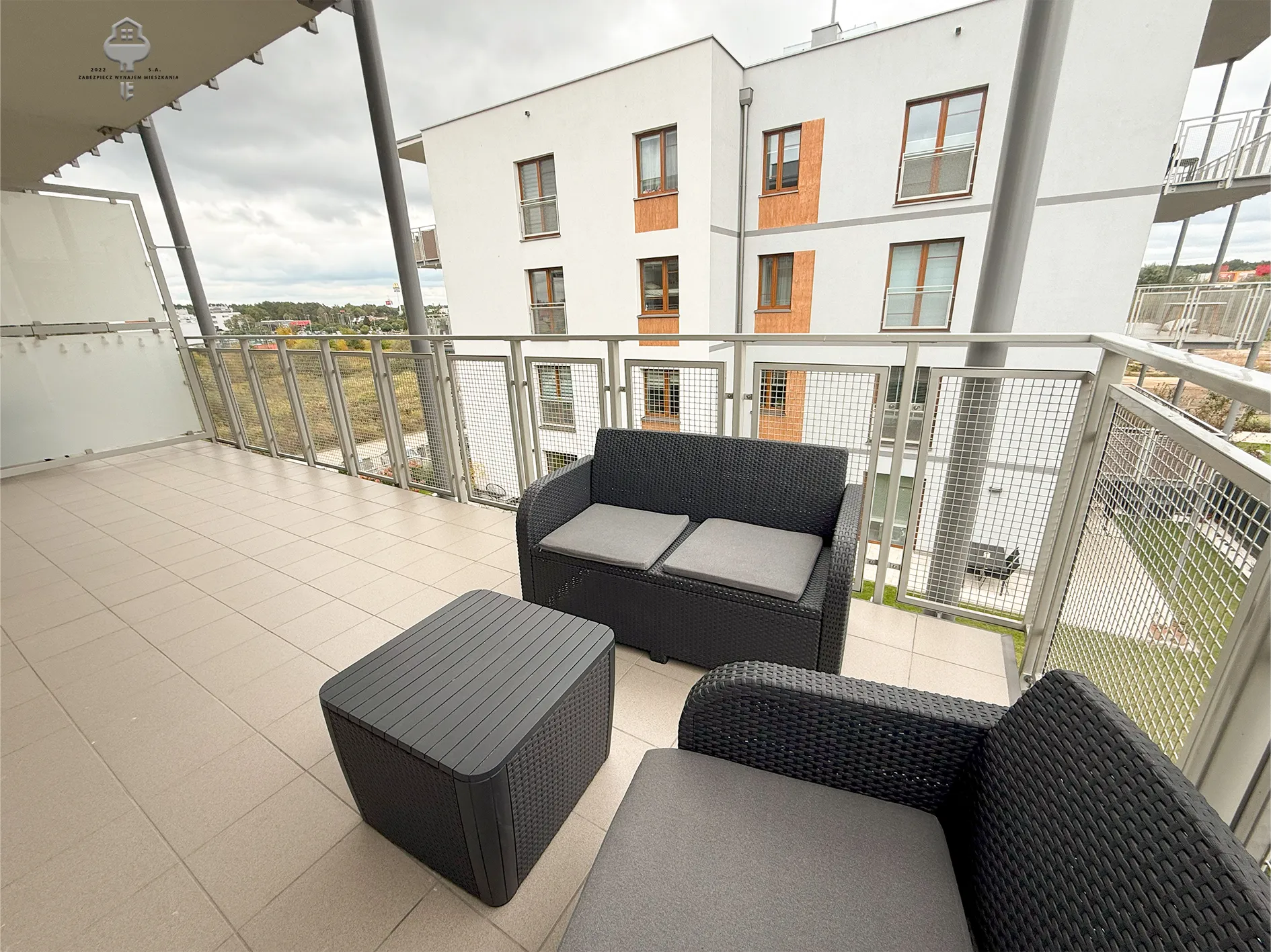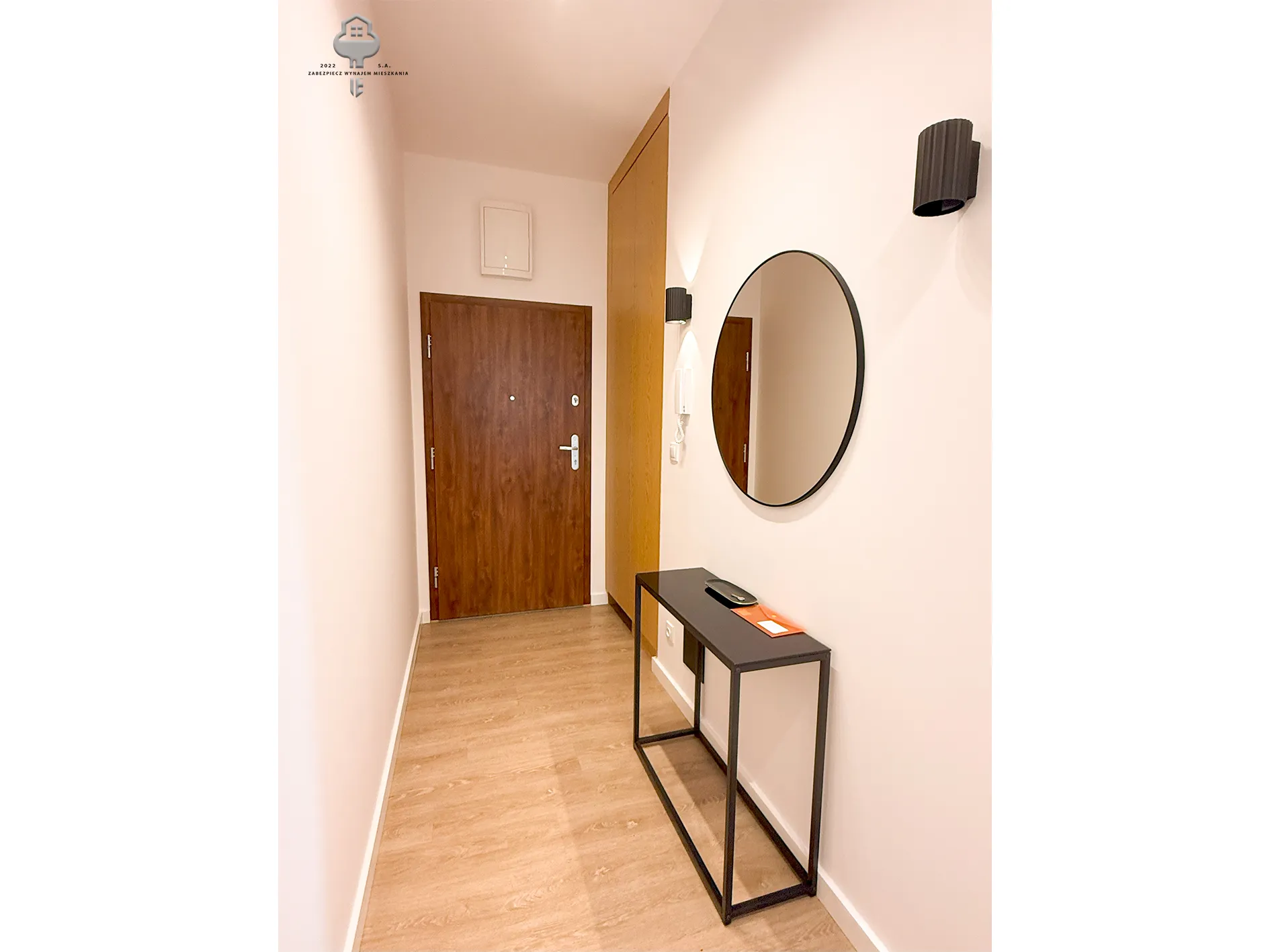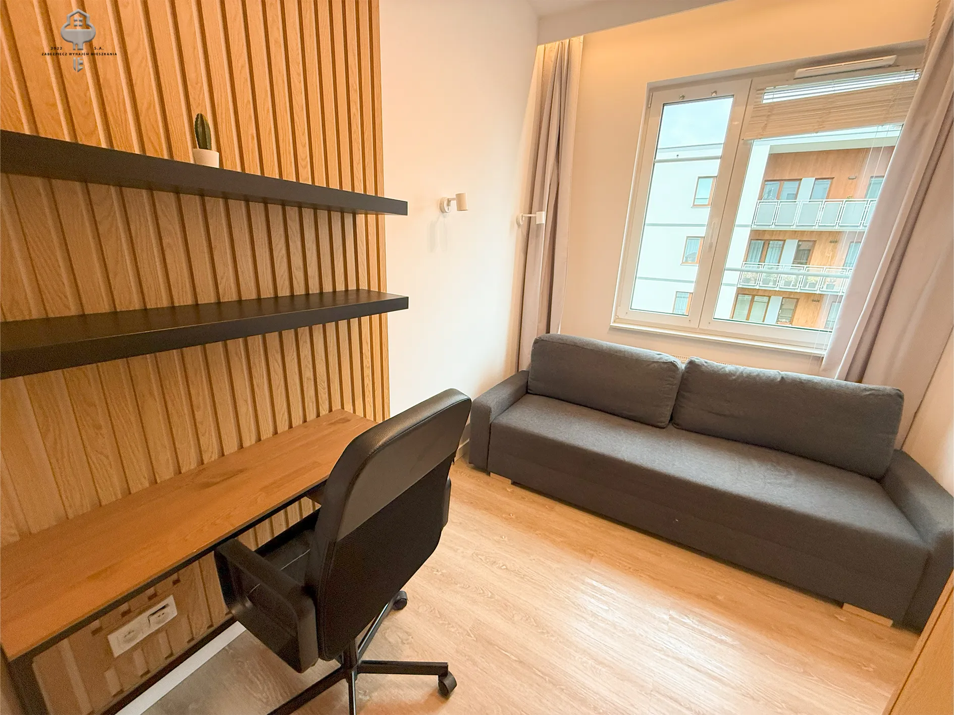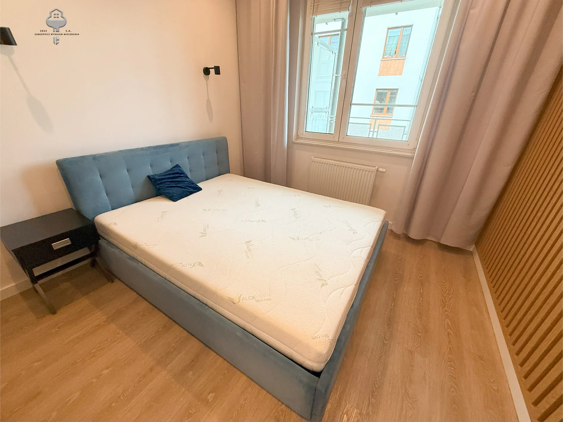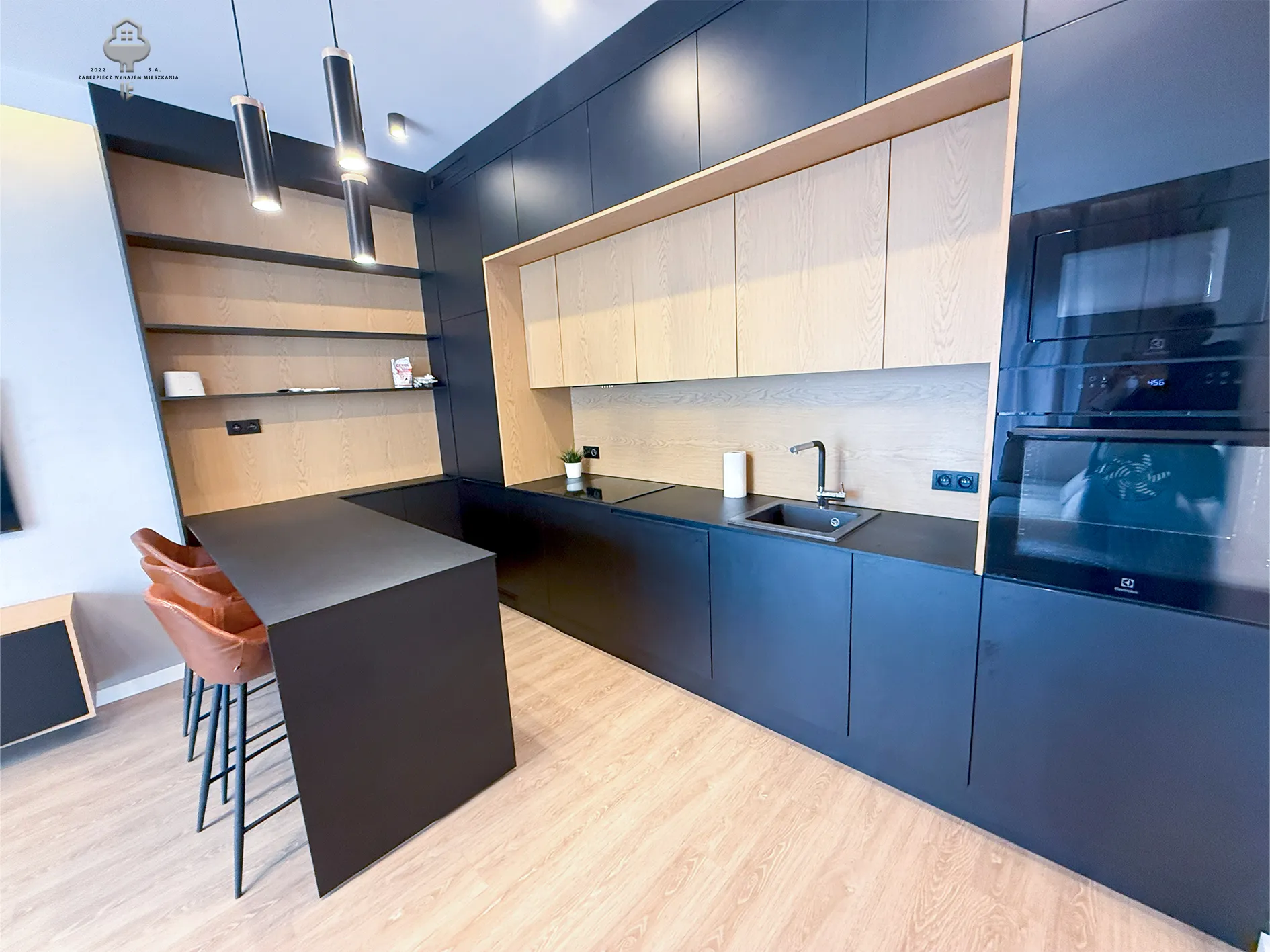Nieruchomość zlokalizowana na zamkniętym, spokojnym osiedlu. Mieszkanie nowoczesne, urządzone w wysokim standardzie, dominują barwy jasne z dodatkiem drewna oraz czarnych elementów. Lokal składa się z przestronnego salonu z dostępem do balkonu, aneksu kuchennego, łazienki, przedpokoju, sypialni oraz pokoju.