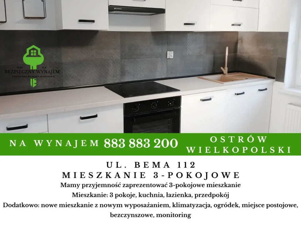 Mamy przyjemność zaprezentować Państwu 3- pokojowe mieszkanie o powierzchni 70 m2 zlokalizowane w Ostrowie Wielkopolskim przy ul. Bema 112.