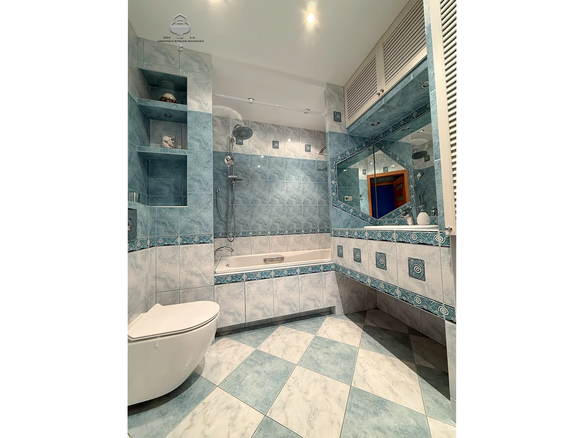 – Łazienka: wanna z funkcją prysznica, umywalka, pralka, meble łazienkowe, sedes.