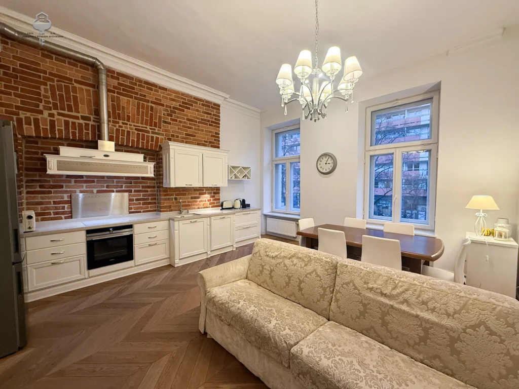 Nieruchomość zlokalizowana w Warszawie w dzielnicy Śródmieście. Lokal w wysokim standardzie o klasycznym eleganckim wystroju. W mieszkaniu królują jasne barwy, dodatki do wystroju eleganckie, wszystko tworzy jednolitą całość i daje poczucie przestrzeni komfortu. Lokal składa się salonu z aneksem kuchennym, sypialni, pokoju, pokoju gościnnego z dostępem do balkonu, dwóch łazienek, przedpokoju. Każdy pokój jest umeblowany ze starannie dobranymi dodatkami do wnętrza. Lokal jest gotowy do zamieszkania.
