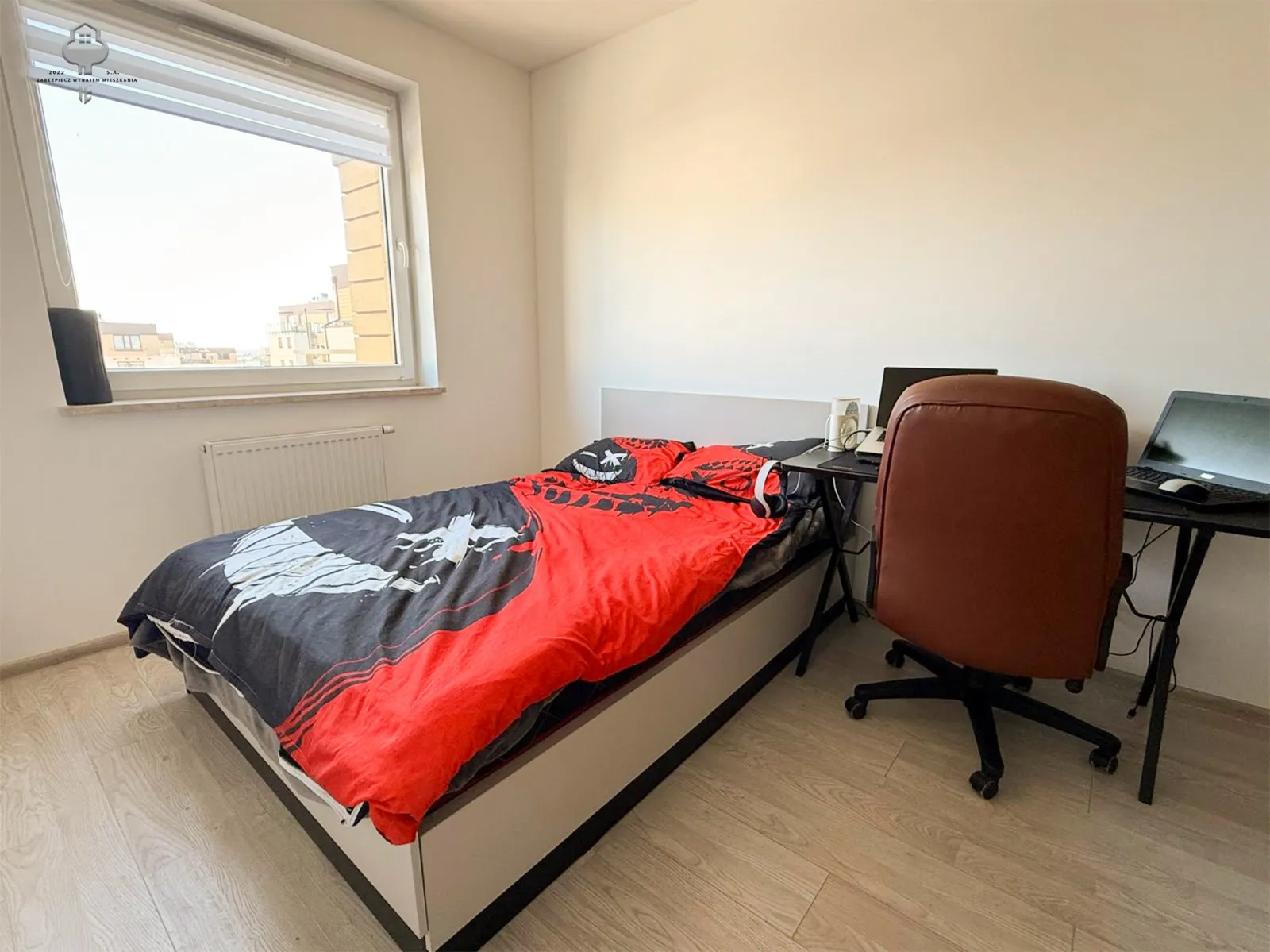2) Pokój: łóżko, szafa w zabudowie.